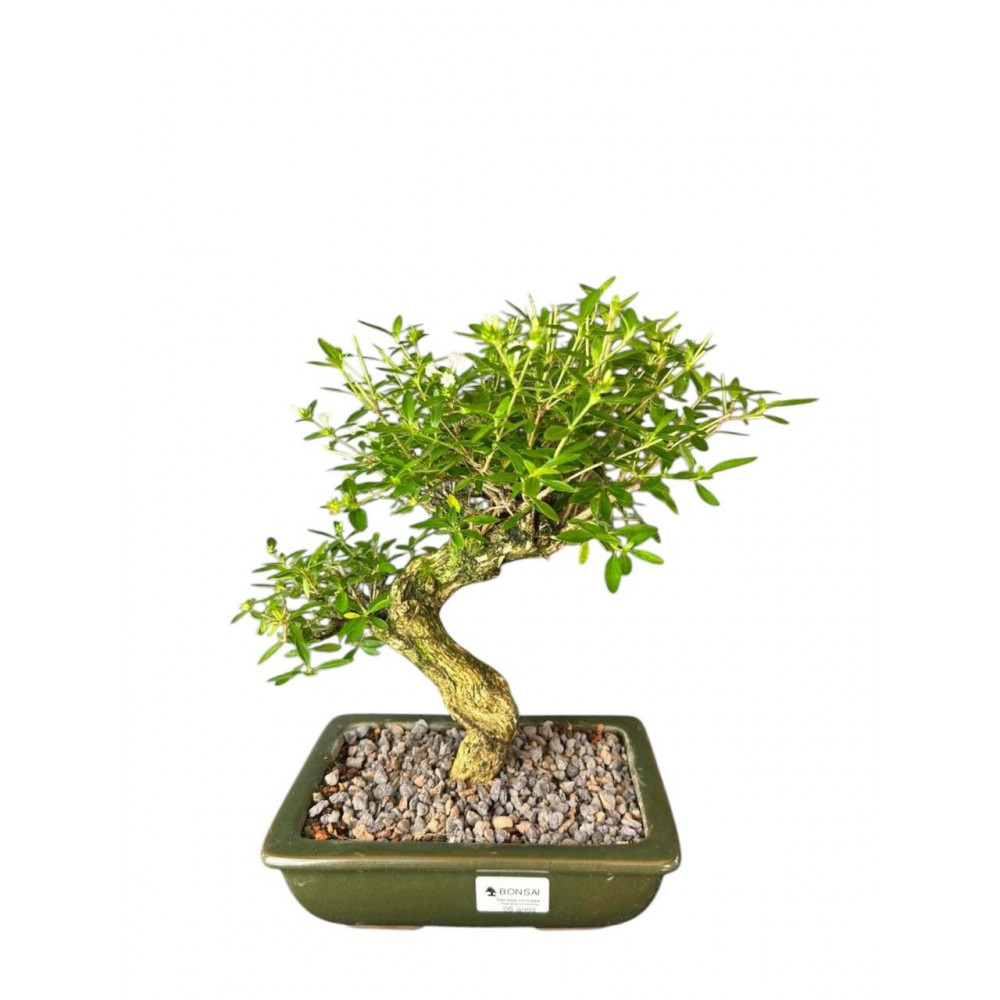 Características: O Bonsai de Serissa phoetida é popularmente chamada de Serissa chinesa. Esta planta é um arbusto. Possui folhas estreitas, verdes e brilhantes. Suas flores são brancas em forma de estrelas que floram durante o ano todo. Seu tronco é marrom-claro. A Serissa Chinesa é muito admirada pelos Bonsaístas, pela beleza de suas flores e tronco rugoso.